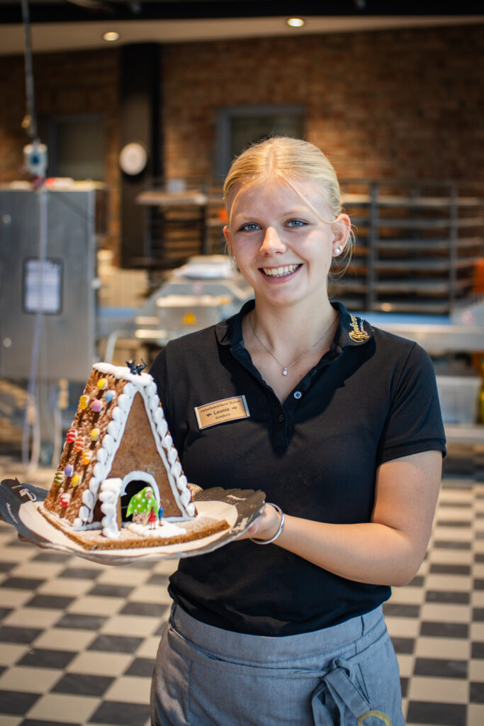 Zu Beginn empfangen wir die Kinder in unserer festlich geschmückten Backstube. Nach einer kurzen Einführung durch unsere Bäcker/innen erhält jedes Kind sein eigenes Lebkuchenhaus-Set.